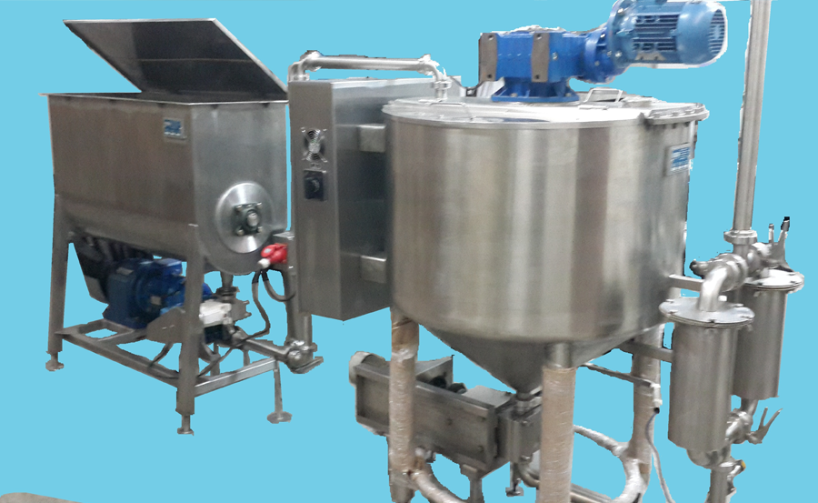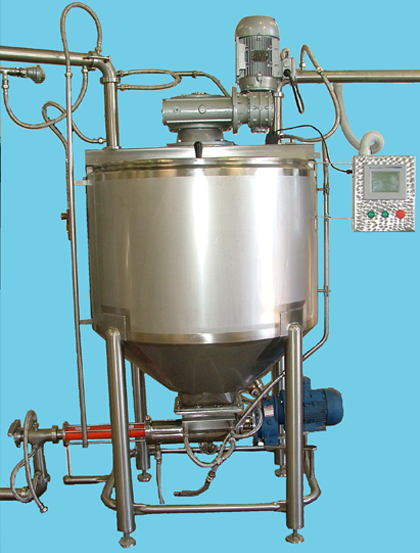 Consiste en una tolva calefaccionada un desmenuzador giratorio de alta velocidad para facilitar la disolución y homogeneización de materias primas y un sistema de removedores y rascadores de alta eficiencia. Esta construido en su totalidad en acero Inoxidable con pulido Sanitario Todo el sistema está controlado por un PLC donde se pueden cargar recetas de los diferentes productos.