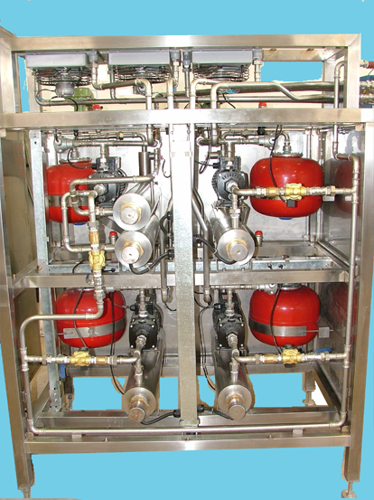 Circuitos cerrados de agua con control de nivel y temperatura, donde calientan el agua o la enfrían según la necesidad del proceso.